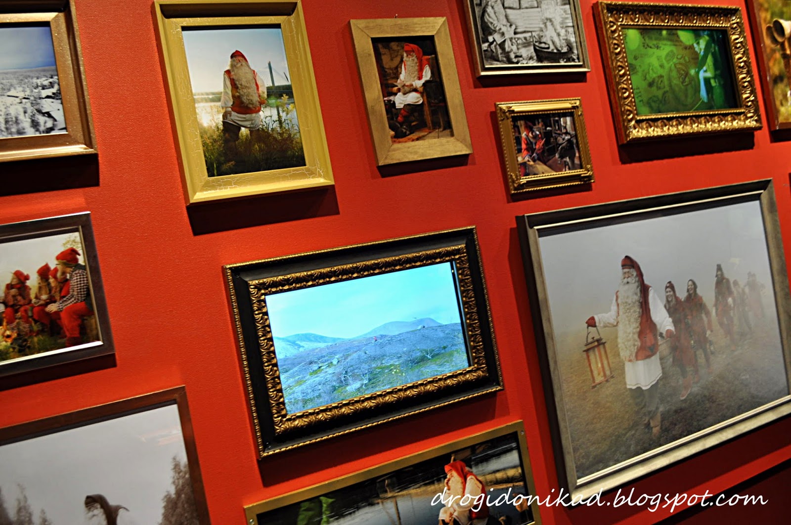 Po wyjściu z klimatycznej salki, przechodzimy długim korytarzem oglądając galerię listów i zdjęć (niektóre się poruszają, machają do nas i puszczaj oko). Tak dochodzimy do sklepiku, w którym odebrać możemy nasze zdjęcie. W wersji papierowej lub elektronicznej. Tak, cywilizacja w pełnej krasie dotarła na biegun. A mikołajowe studio było tak profesjonalnie przygotowane, że nawet ja - która nie lubi się w obiektywie - byłam zadowolona z efektu. A może to nie studio? Może to ten uśmiech dziecka, które odezwało się nagle w mym wnętrzu i pełen zachwytu błysk oka? Cóż, nie wykluczam i tej opcji!